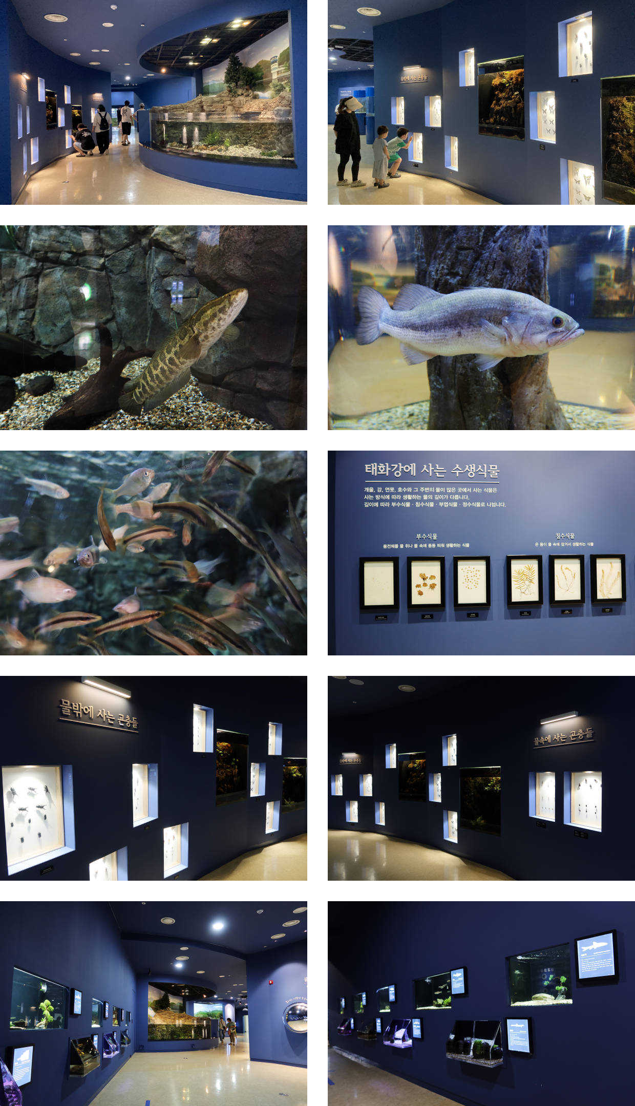 1층 전시관 내부는 태화강의 하류에서부터 상류에 이르기까지 다양한 수중 생태계를 소개하고 있다. 태화강에 사는 수생식물과 곤충, 소형어류 등 수족관으로 꾸며져 있어 재미있게 관람할 수 있다. 이름도 생소한 다양한 어류들을 만나는 것도 신기하지만, 그 움직임을 보고 있노라면 시간 가는 줄 모를 정도다.