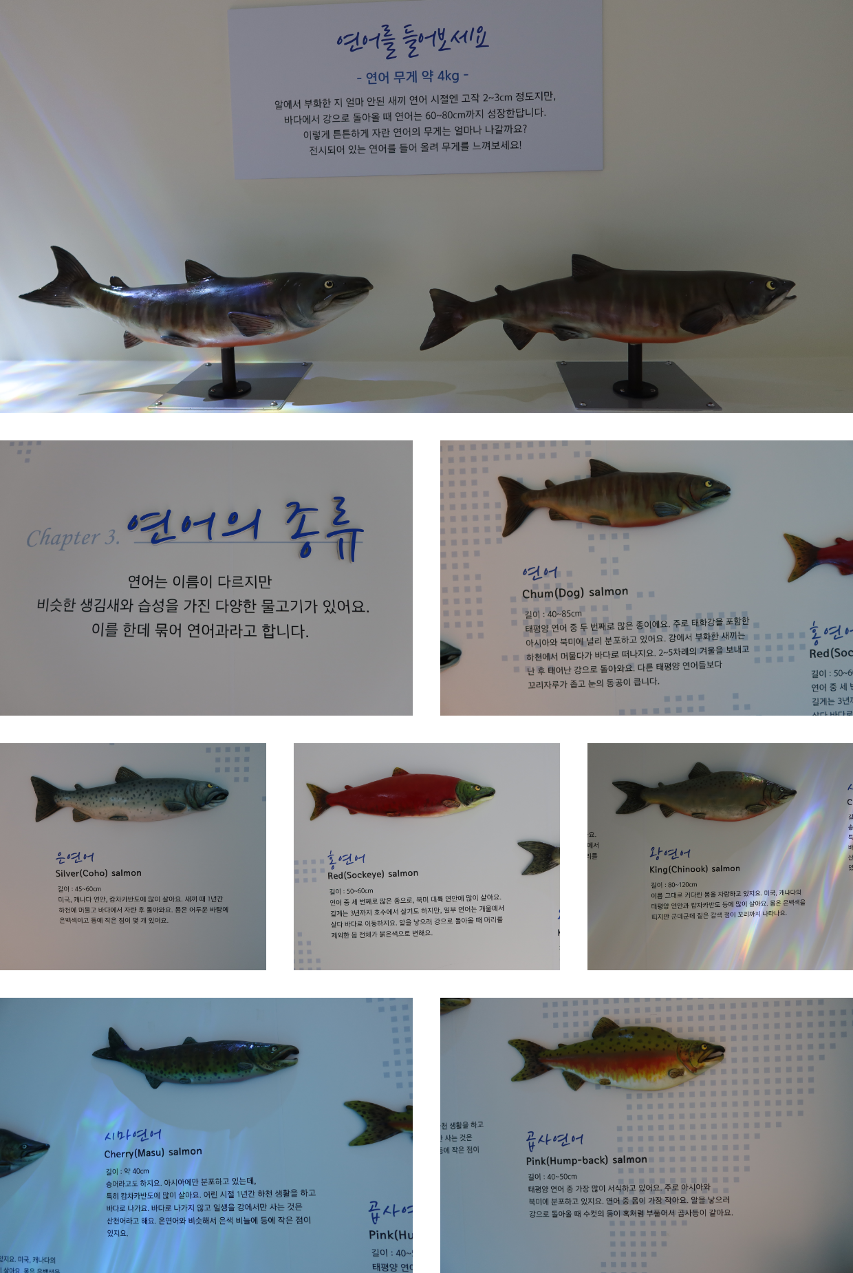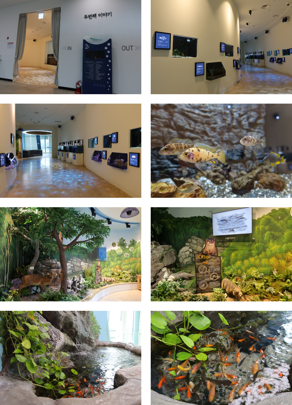 두번째 이야기는 다양한 어종들의 세계로 구성되어 있다. 아프리카의 관상어, 남아메리카의 관상어, 수달 디오라마와 폭포수조를 감상하고 나면, 드디어 연어의 삶을 마주한다.