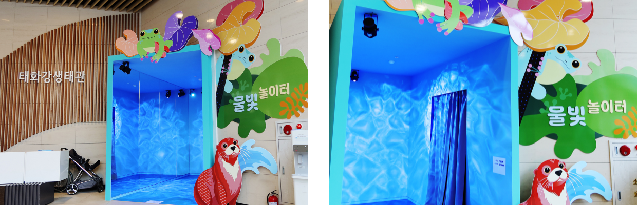 전시관을 돌아보고 다시 1층 로비로 내려오면, 10월 1일 개관하여 운영에 들어간 미디어아트 공간 ‘물빛 놀이터’가 있다. 특히 반응형 미디어아트로 조성되어 있어 아이들도 즐겁지만 어른들이 더 좋아하는 공간으로 입소문을 타고 있다.