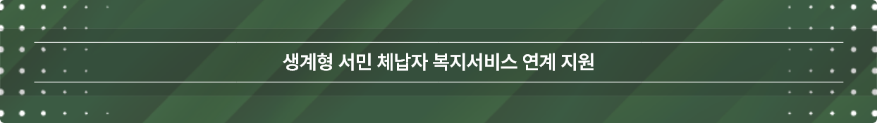 - 복지제도 연계, 체납세금 정리보류, 신용불량등록 해제, 관허사업제한 유예, 기초생활수급·차상위계층 선정 지원